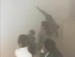 水消火器体験では、実際に的にめがけて消火活動を体験し、消火器の使い方や火の消し方を楽しく学びました。煙体験では、安全な煙を使い、実際の火災のように前が見えない中で避難する練習を行いました。子どもたちは、「全然前が見えなくて怖かった。」「姿勢を低くして動くのが大切なんだね。」と話し、体験を通して避難の大切さを実感していました。