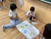 生活科の学習で,「おもちゃランド」を開き、1年生と交流しました。ペットボトル・食品トレー・ラップの芯など,身近にある材料を使って輪投げやボーリングなどの楽しい遊び場を作り,1年生を招待しました。